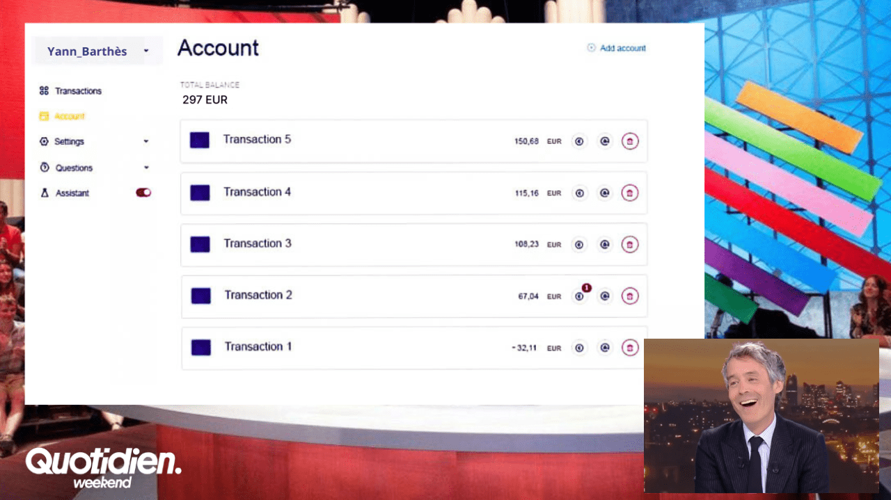 Yann Barthès: «J'ai entendu dire qu'il y a un logiciel qui utilise l'intelligence artificielle pour trader des crypto-monnaies. Maintenant, tous nos téléspectateurs savent comment il s'appelle, aussi.»